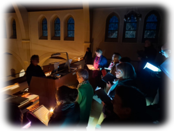 führte einen kleinen Kreis von Sängerinnen/Sängern nach